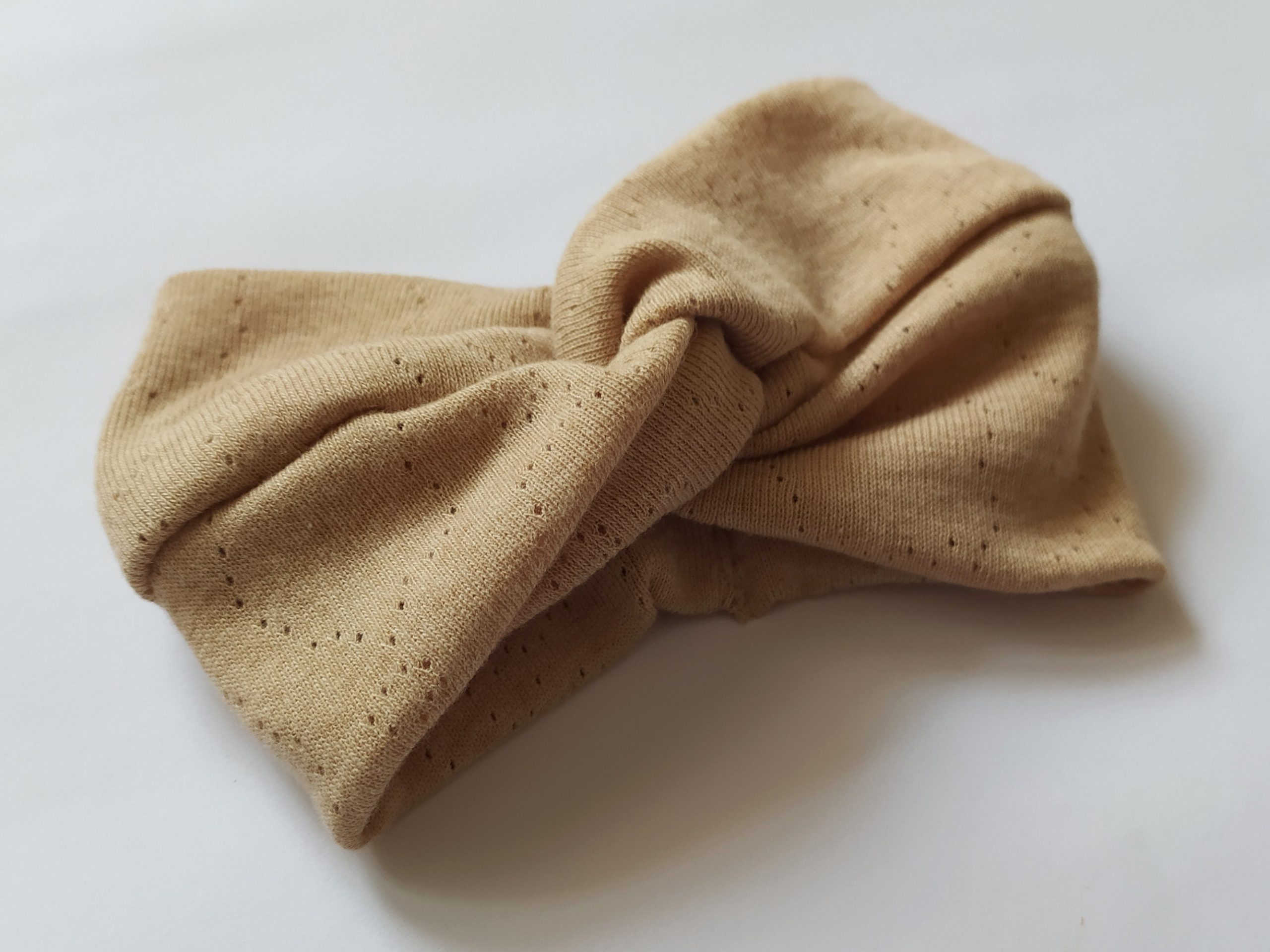 Turbante hecho en algodón calado 100 % orgánico con garantía OCCG y GOTS. Ideal para pieles sensibles, personas con dermatitis y alergias en la piel. El patrón de las AIKO es especial; tiene un volumen que la convierte en una pieza única.