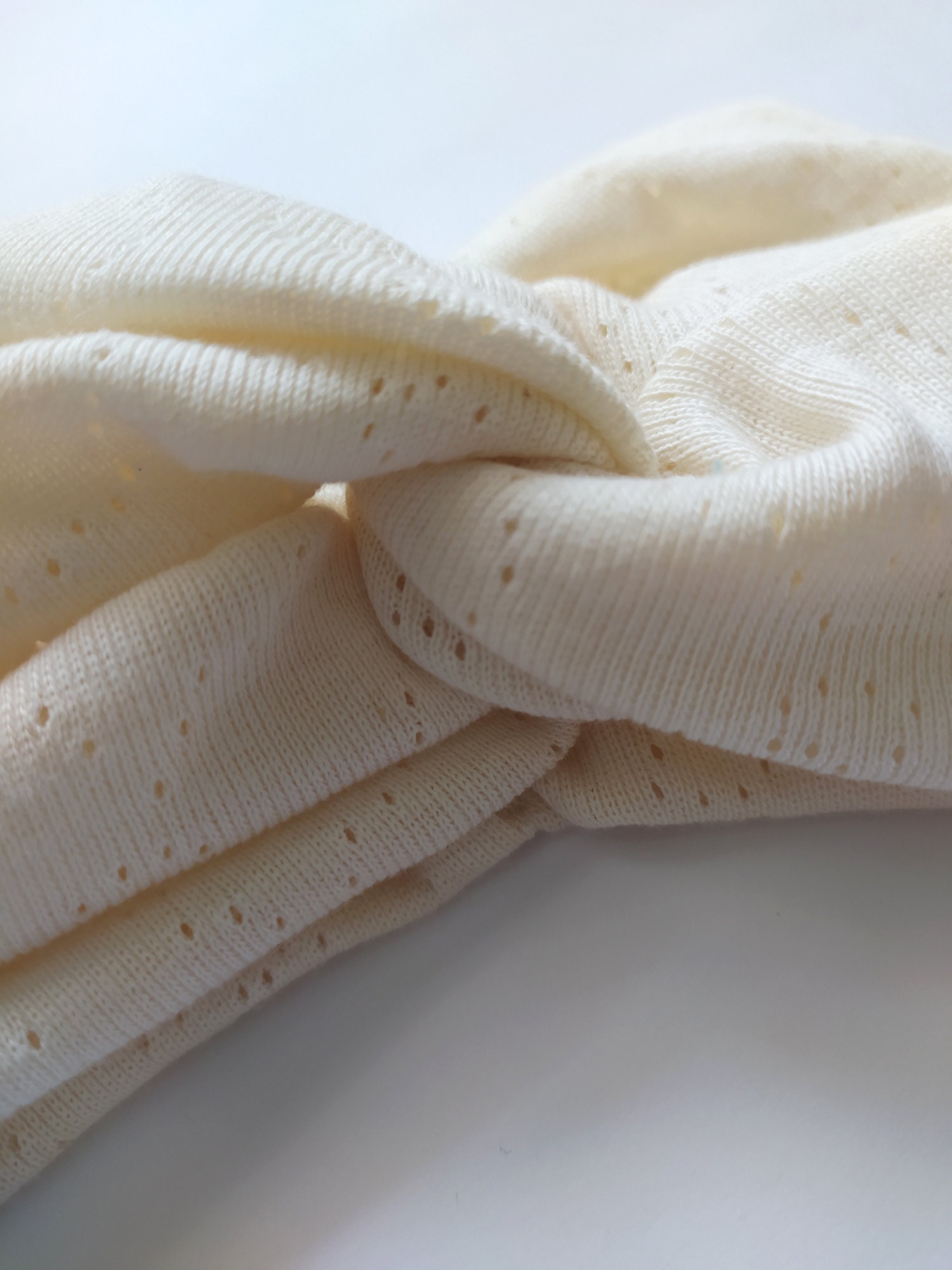 Turbante hecho en algodón calado 100 % orgánico, con garantía OCCG y GOTS. Ideal para pieles sensibles, personas con dermatitis y alergias en la piel. El patrón de los Aiko es especial, tiene un volumen único.