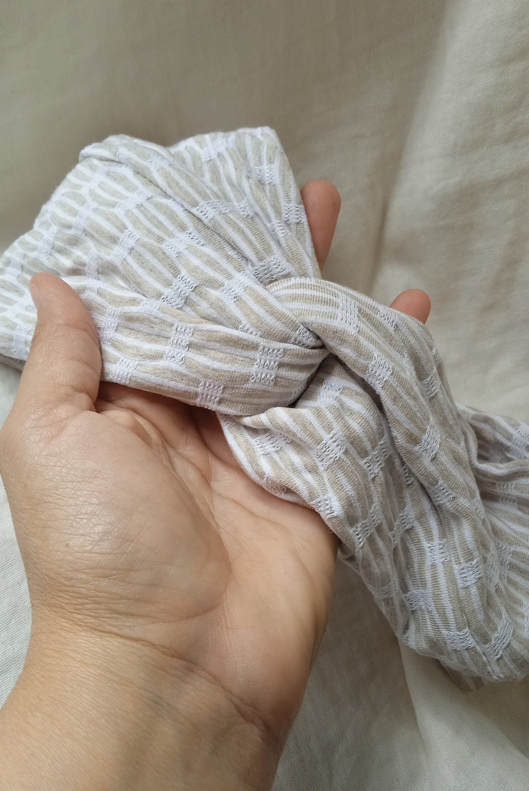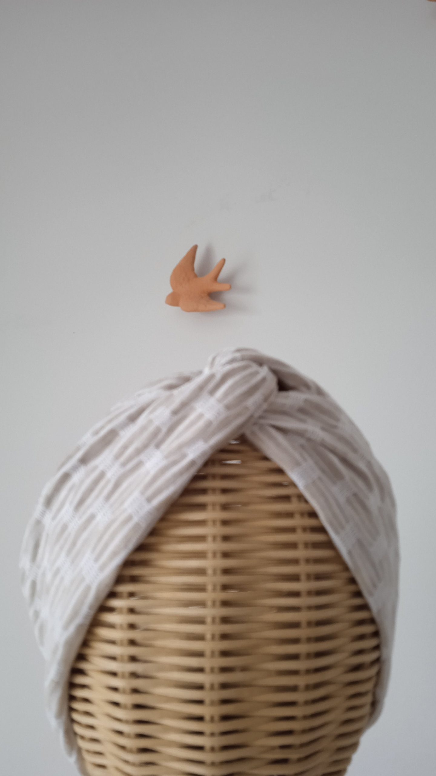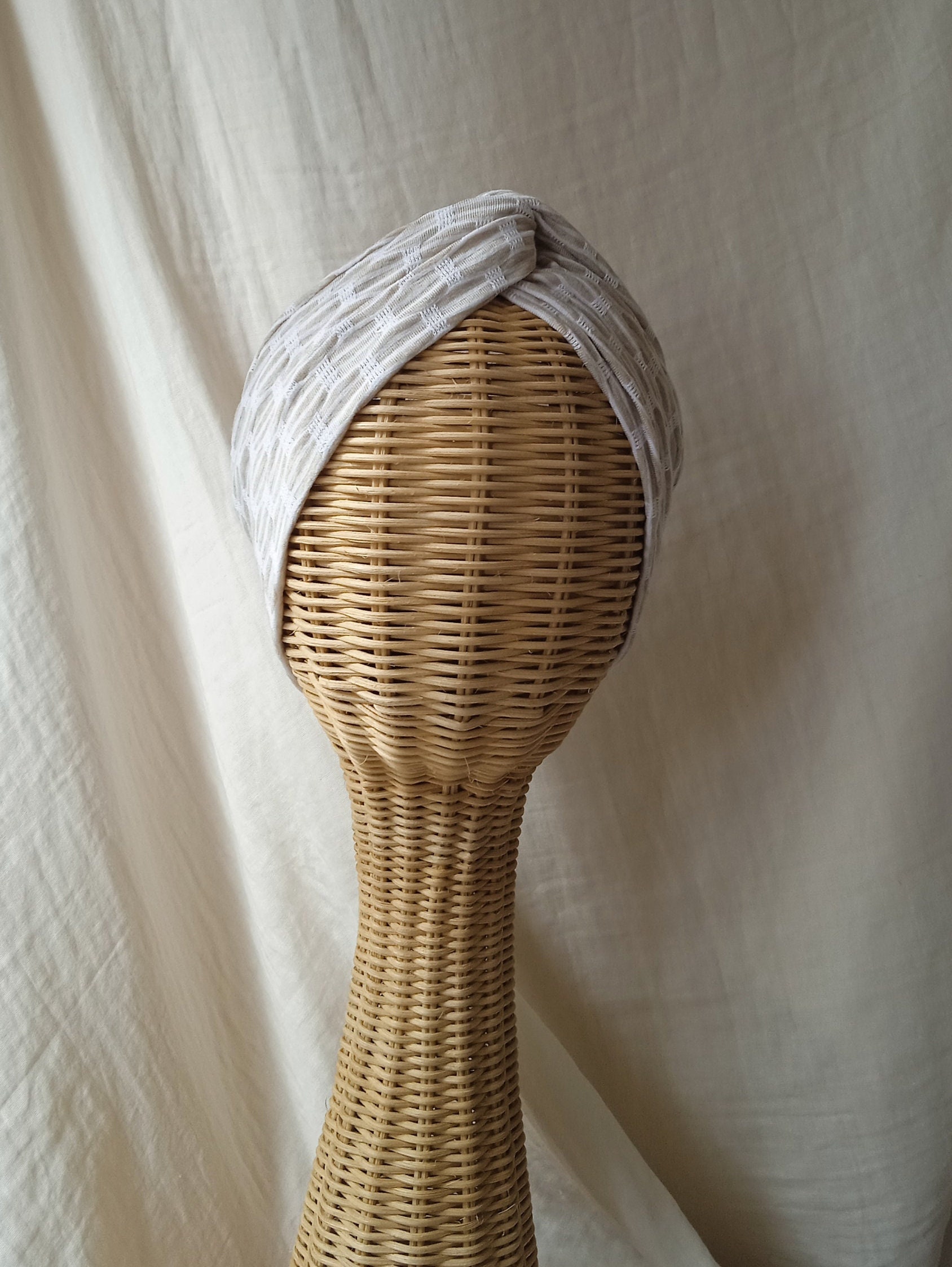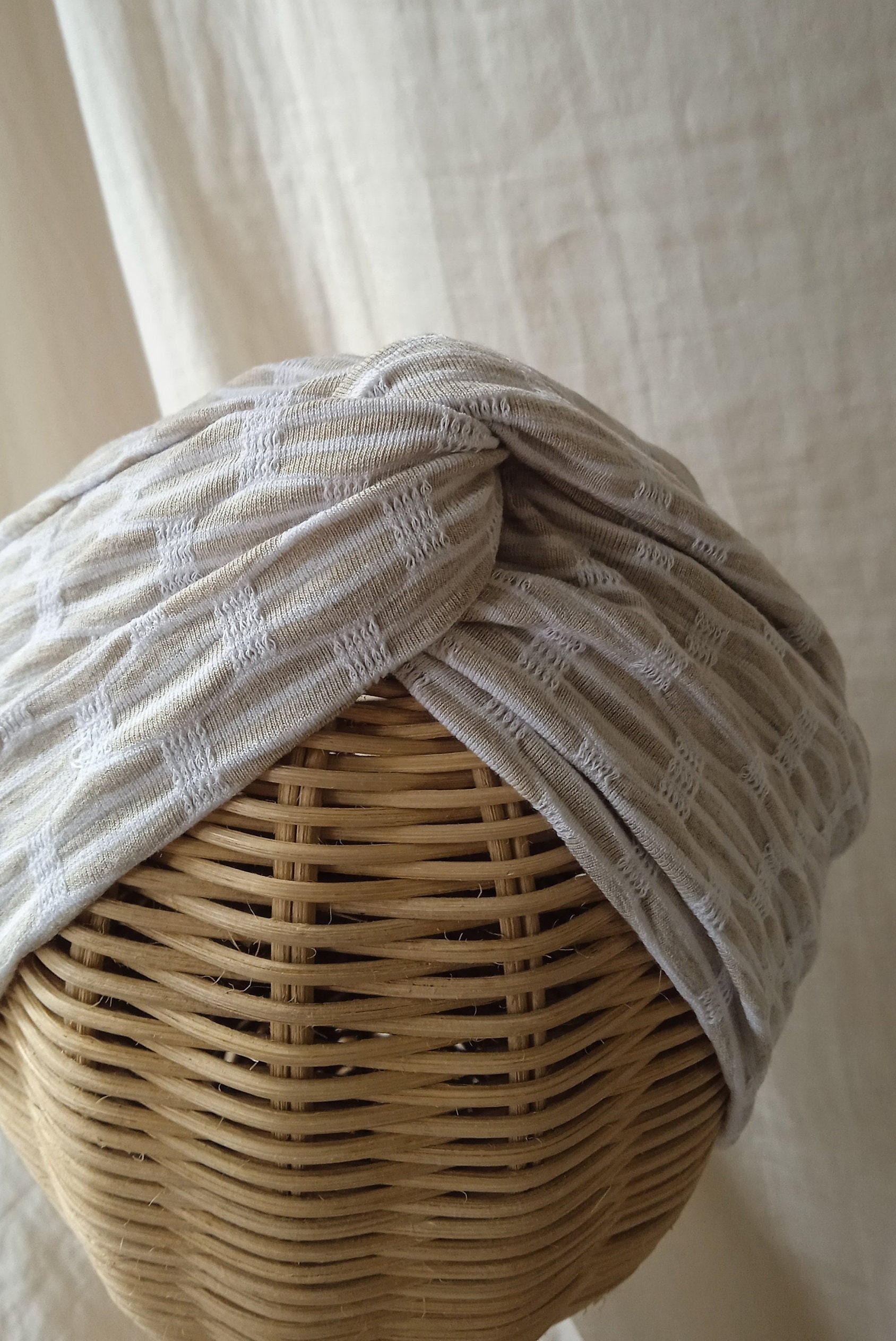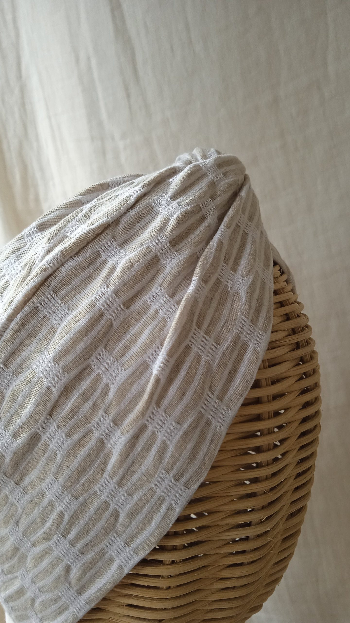 La Aiko Montse es pura belleza. Su tejido con textura y motivo geométrico es original y elegante. Se ajusta a la cabeza como un guante, no se resbala y es muy cómoda de llevar.