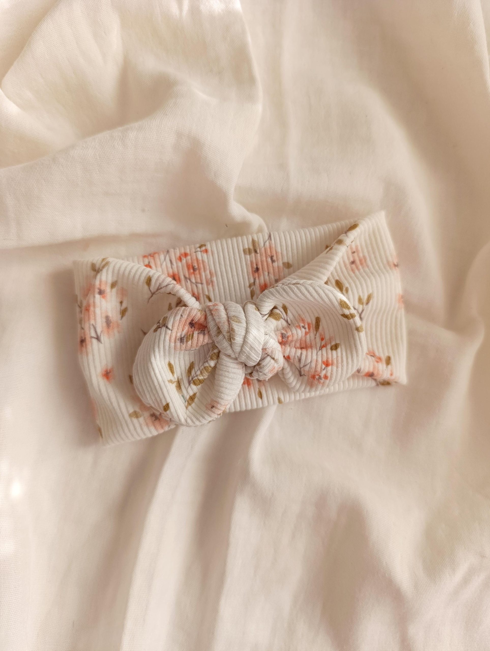 • Cinta con estampado cherry blossom sobre canalé blanco.