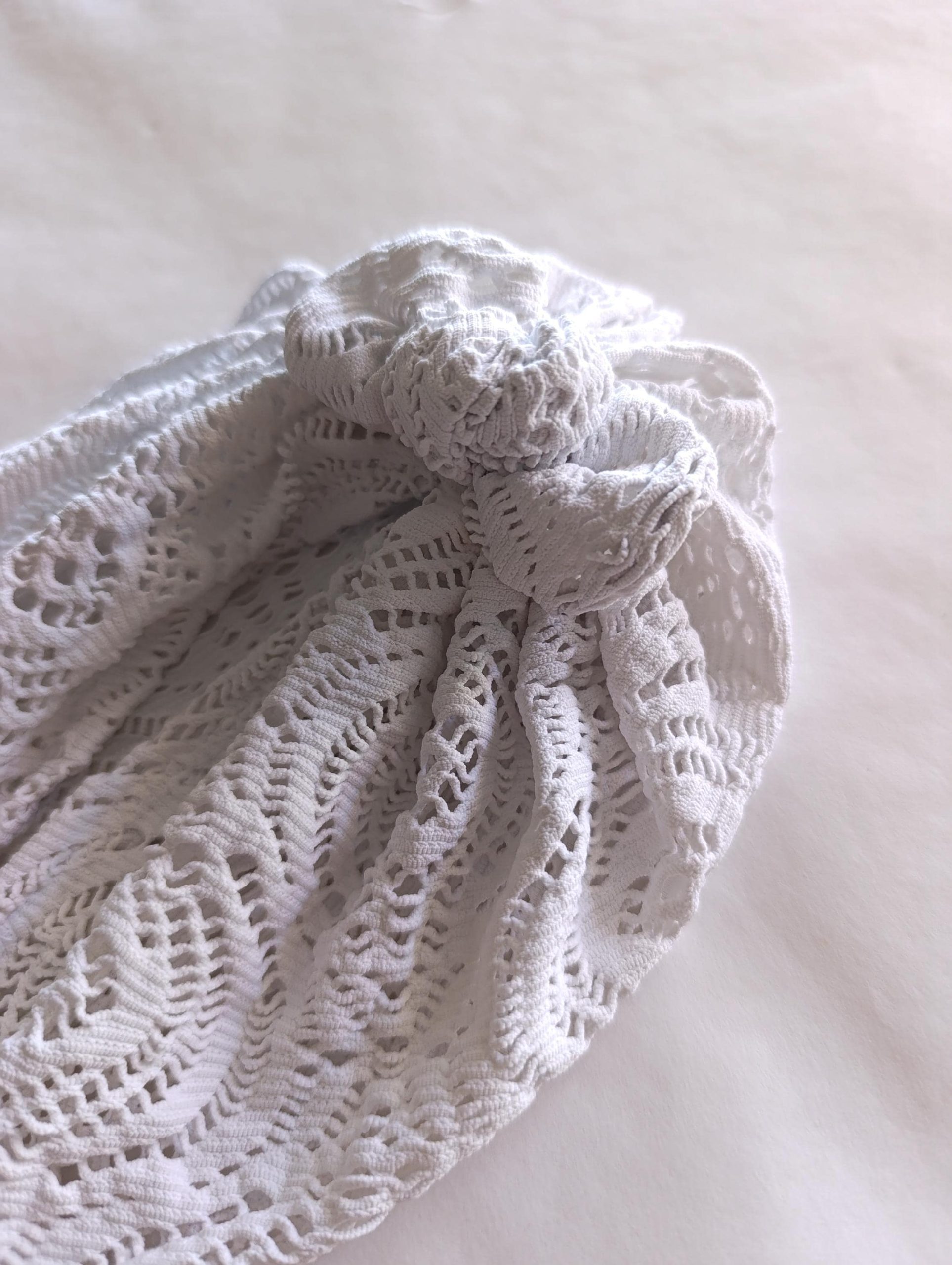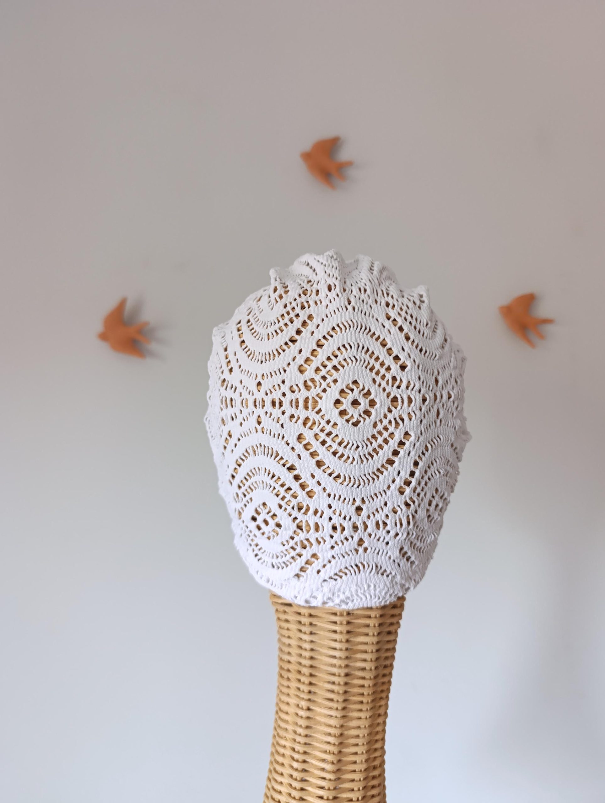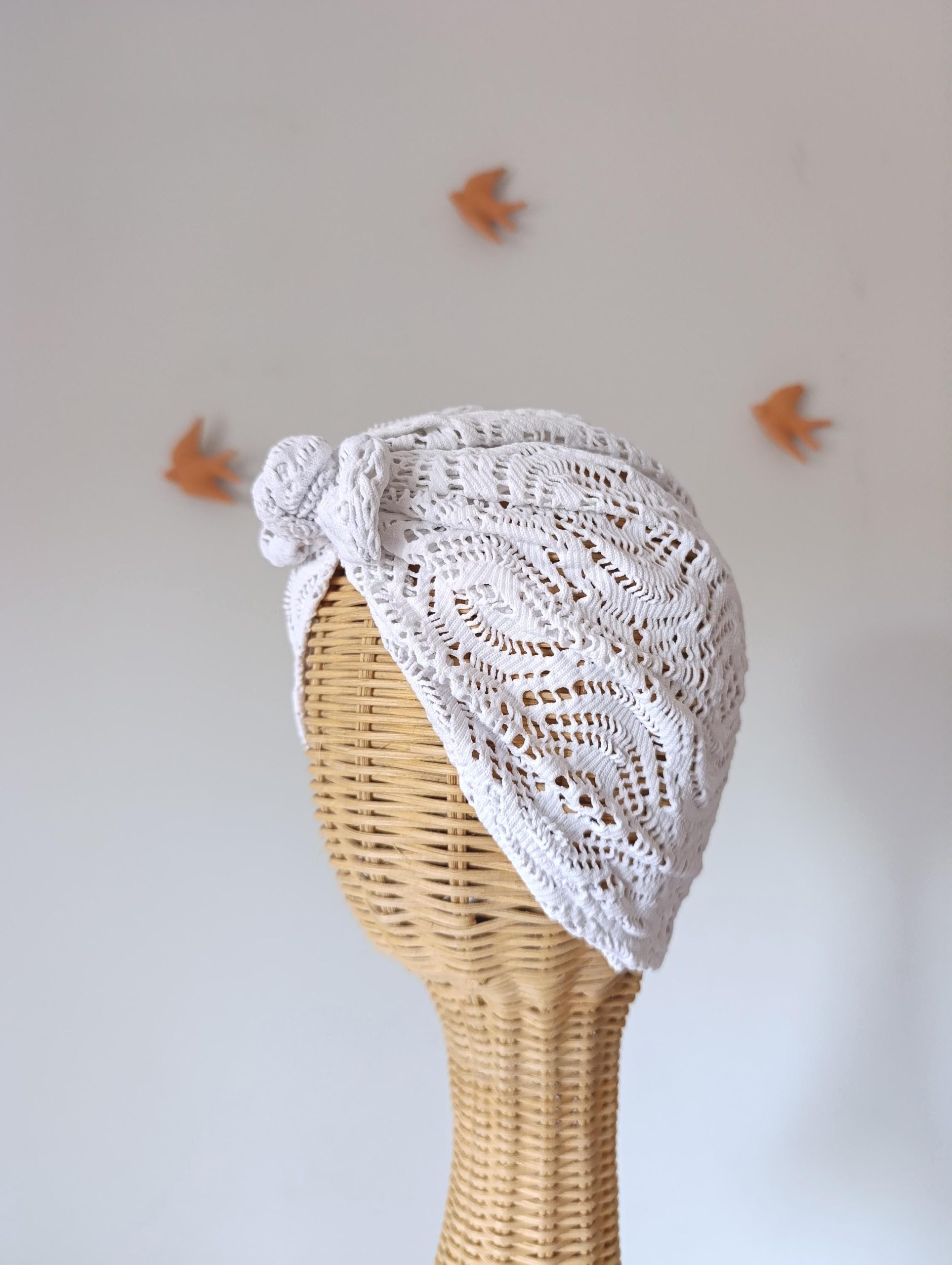Aina es un turbante artesanal con alma boho y estética vintage. Su delicado tejido calado en color blanco natural evoca el estilo de los veranos mediterráneos, frescos y despreocupados. Su diseño envolvente con nudo al frente aporta un toque femenino y relajado, ideal para llevar en primavera, verano y entretenimiento.