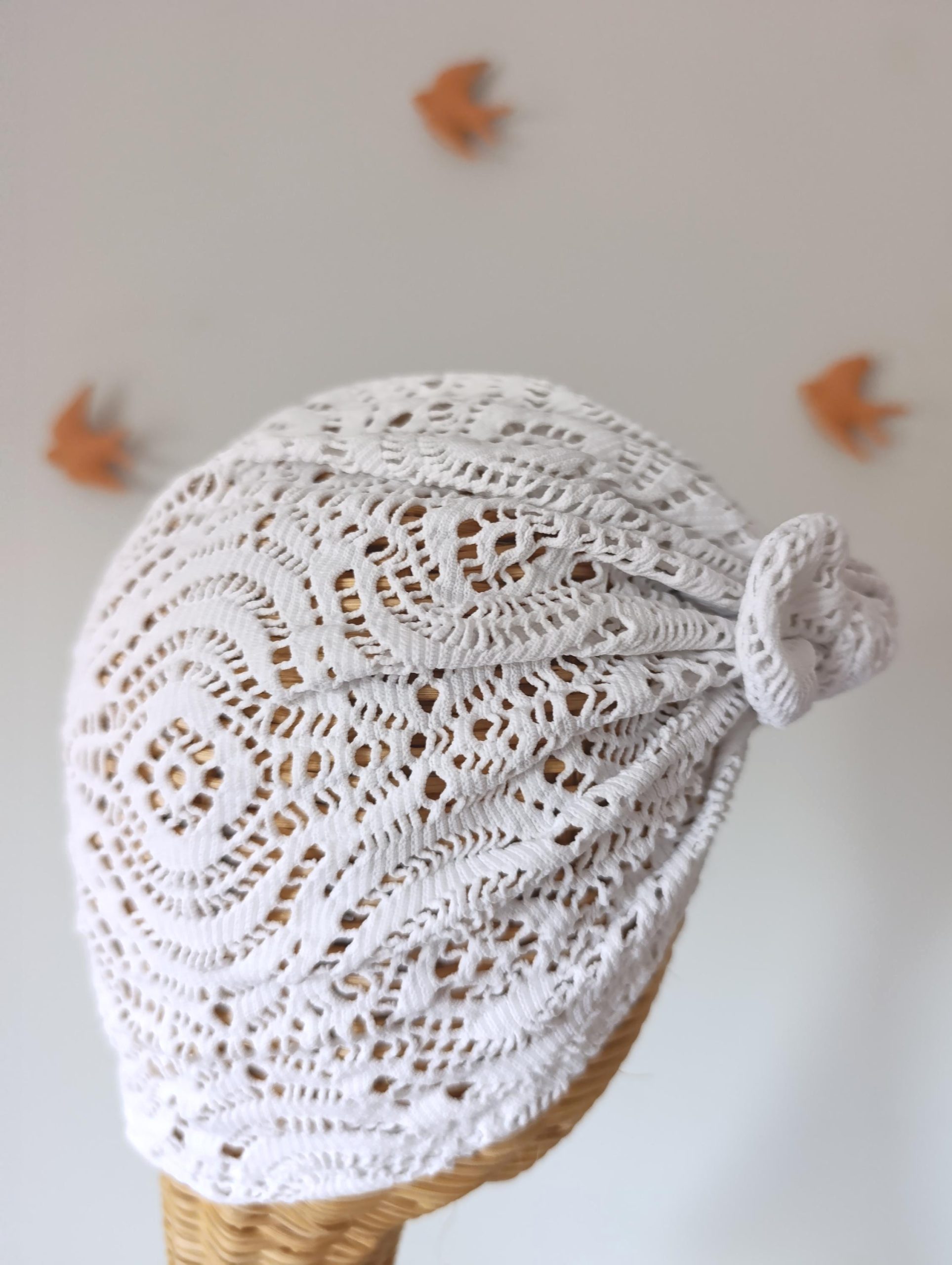 Disponible en todas las tallas, desde recién nacida hasta mujer adulta. Si tienes alopecia o sensibilidad en el cuero cabelludo, es una opción suave y cómoda. Cada pieza está hecha a mano con cuidado y atención en mi taller.